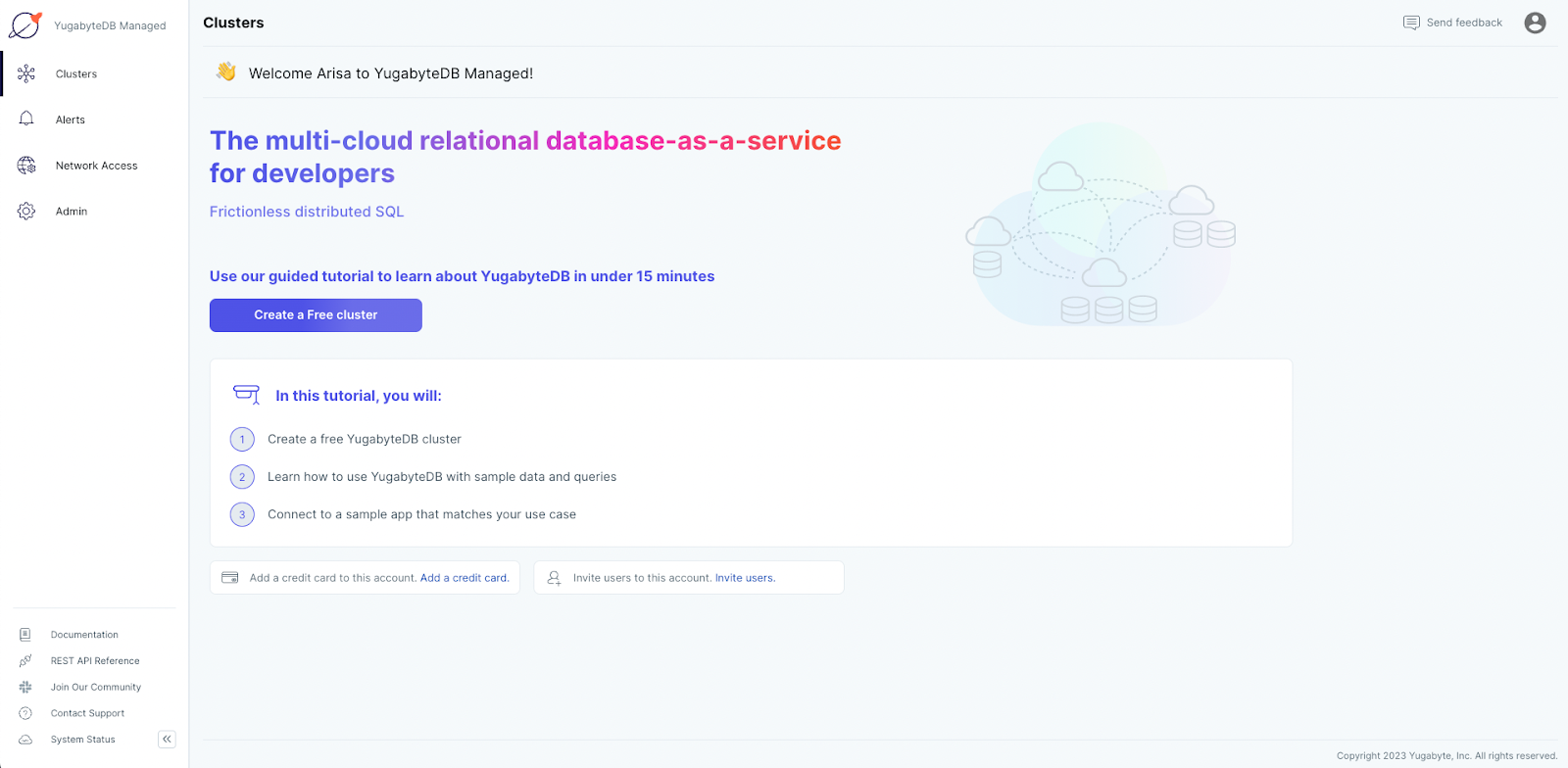 以上で、YugabyteDB Managedへのサインアップは完了です。