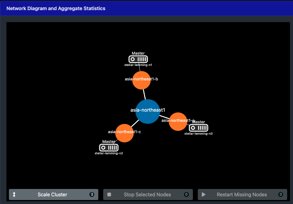 設定が保存されると、ネットワーク図の下にクラスタを操作するボタンが表示されます。