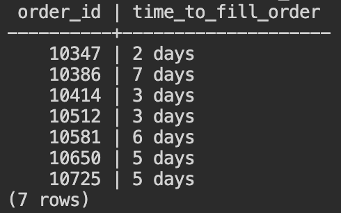 AGE(shipped_date, order_date) AS time_to_fill_order